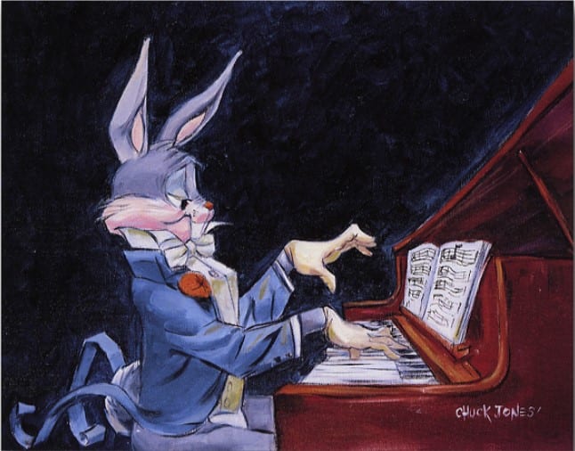 The Chuck Jones Gallery is honoring this birthday milestone with the release of “Bugs Concerto” a fine art print on canvas measuring 19″ x 24″ and in an edition of 375. Offered at a pre-publication price of only $695 FRAMED through the end of July. Click the image or here to acquire this striking work of art. It’ll be the centerpiece of any room in your home, office, or rabbit burrow.