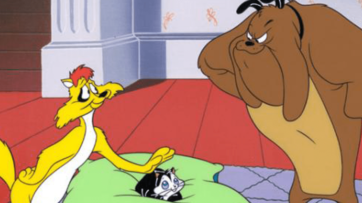 “Marc Anthony is your basic big bulldog, but in Feed the Kitty he falls in parental love with a little kitten, in the way any of us might fall for a cat or another small animal. We all have visual patterns and expectations of things, and cartoon bulldogs are almost invariably big, powerful bullies. Marc Anthony is behaving true to this stereotype when we first see him.
