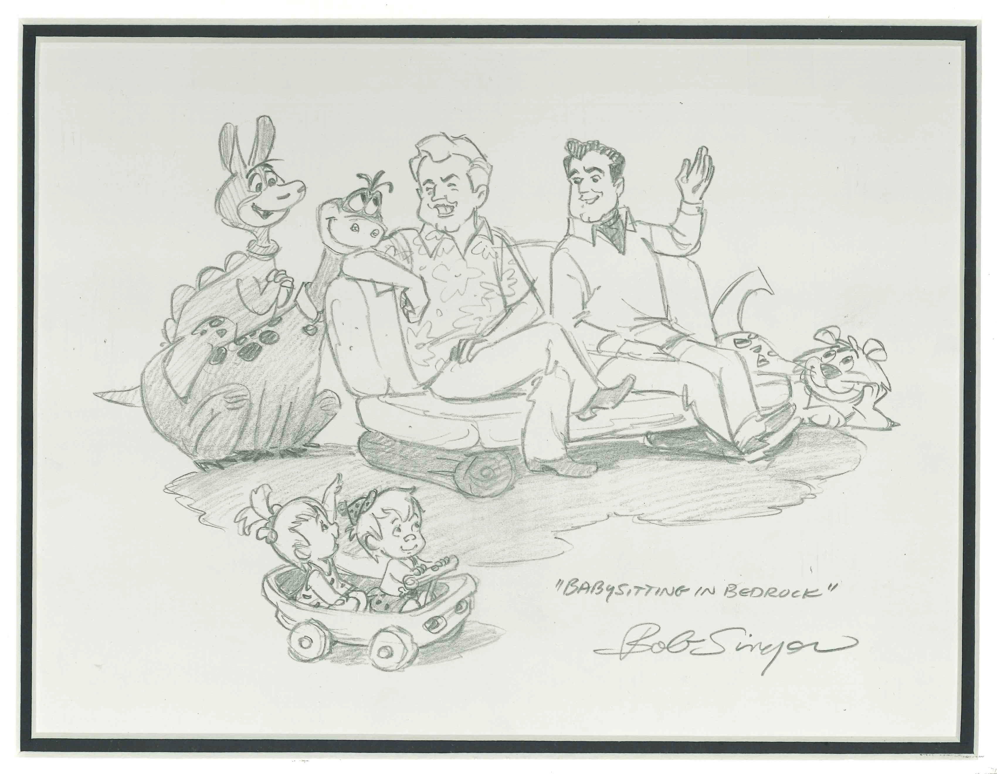 The Official Chuck Jones Virtual Experience is pleased to offer HANNA BARBERA fans a "Babysitting In Bedrock Drawing" Original artwork by Bob Singer.