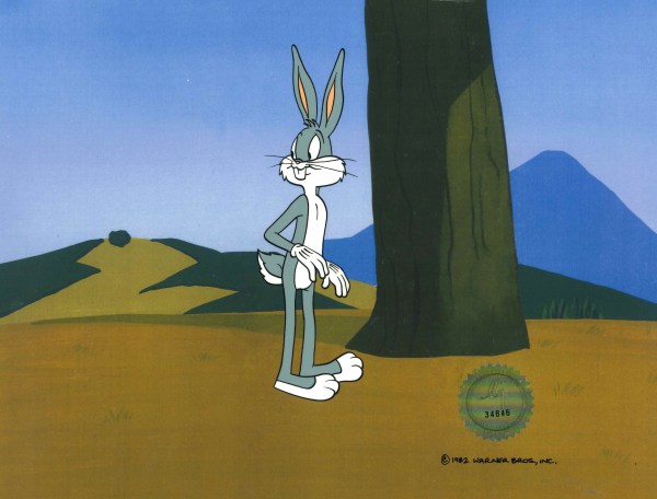 This artwork is an original work from the Friz Freleng-directed 1001 Rabbit Tales, which features the Looney Tunes character Bugs Bunny. Produced and directed by Friz Freleng, this animated film seamlessly blends classic Warner Bros. cartoon shorts with new animation, with Bugs Bunny taking center stage as the story's host.