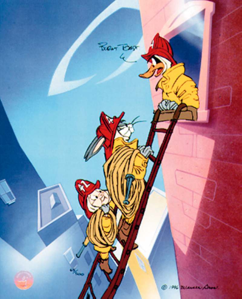 Created from a work by Chuck Jones featuring Bugs Bunny, Daffy Duck and Porky Pig