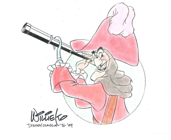 The Official Chuck Jones Virtual Experience is pleased to offer WALT DISNEY fans a "Captain Hook With Spy Glass" Original Drawing artwork by Willie Ito.