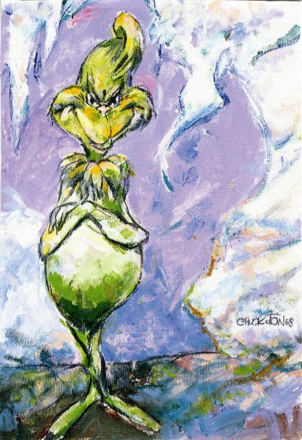 The inspiration for this work of art came from the 1966 animated film, Dr. Seuss' How the Grinch Stole Christmas featuring the disgruntled Grinch.