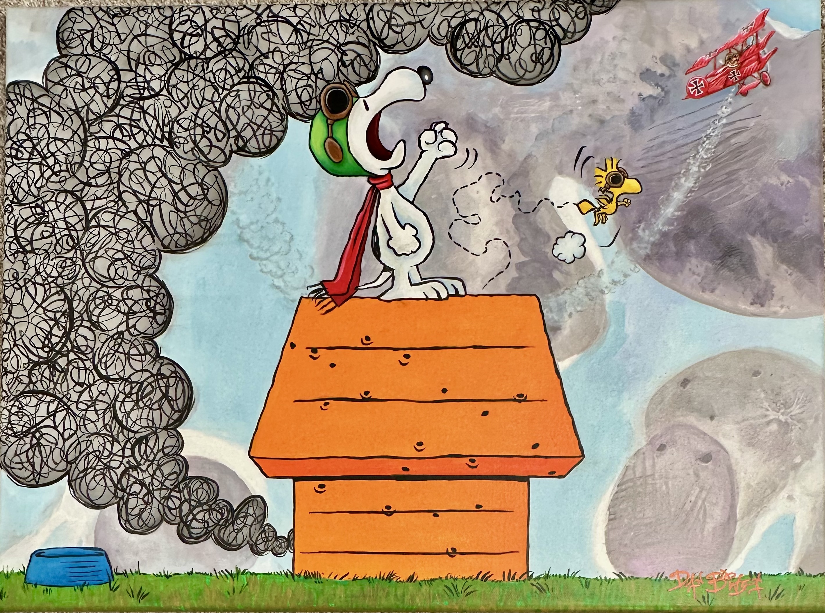 The inspiration for this work of art came from Dan Bowden's homage to the Peanuts character, the Red Baron.