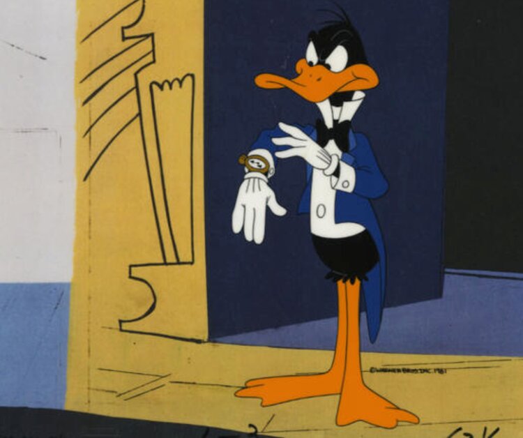 The Official Chuck Jones Virtual Experience is pleased to offer LOONEY TUNES fans a "Daffy Checks The Time" Original Production Cel artwork by Friz Freleng.