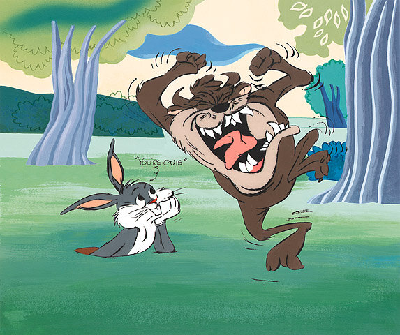 The inspiration for this work of art came from an original by Chuck Jones based on the cartoon character, Tasmanian 'Taz' Devil and Bugs Bunny. The Tasmanian Devil, commonly referred to as Taz, is an animated cartoon character featured in the Warner Bros. Looney Tunes and Merrie Melodies series of cartoons.