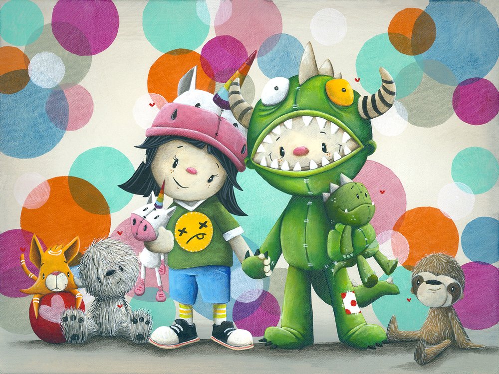 The inspiration for this work of art came from an original work by Fabio Napoleoni featuring his characters Dragonboy, Darwin, Drako, Karley, and Bear.