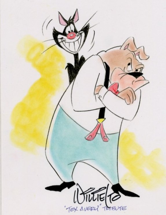 The Official Chuck Jones Virtual Experience is pleased to offer M.G.M. Studio Cartoon fans a "Dog and Cat" a Tex Avery Tribute Original Drawing artwork by Willie Ito.