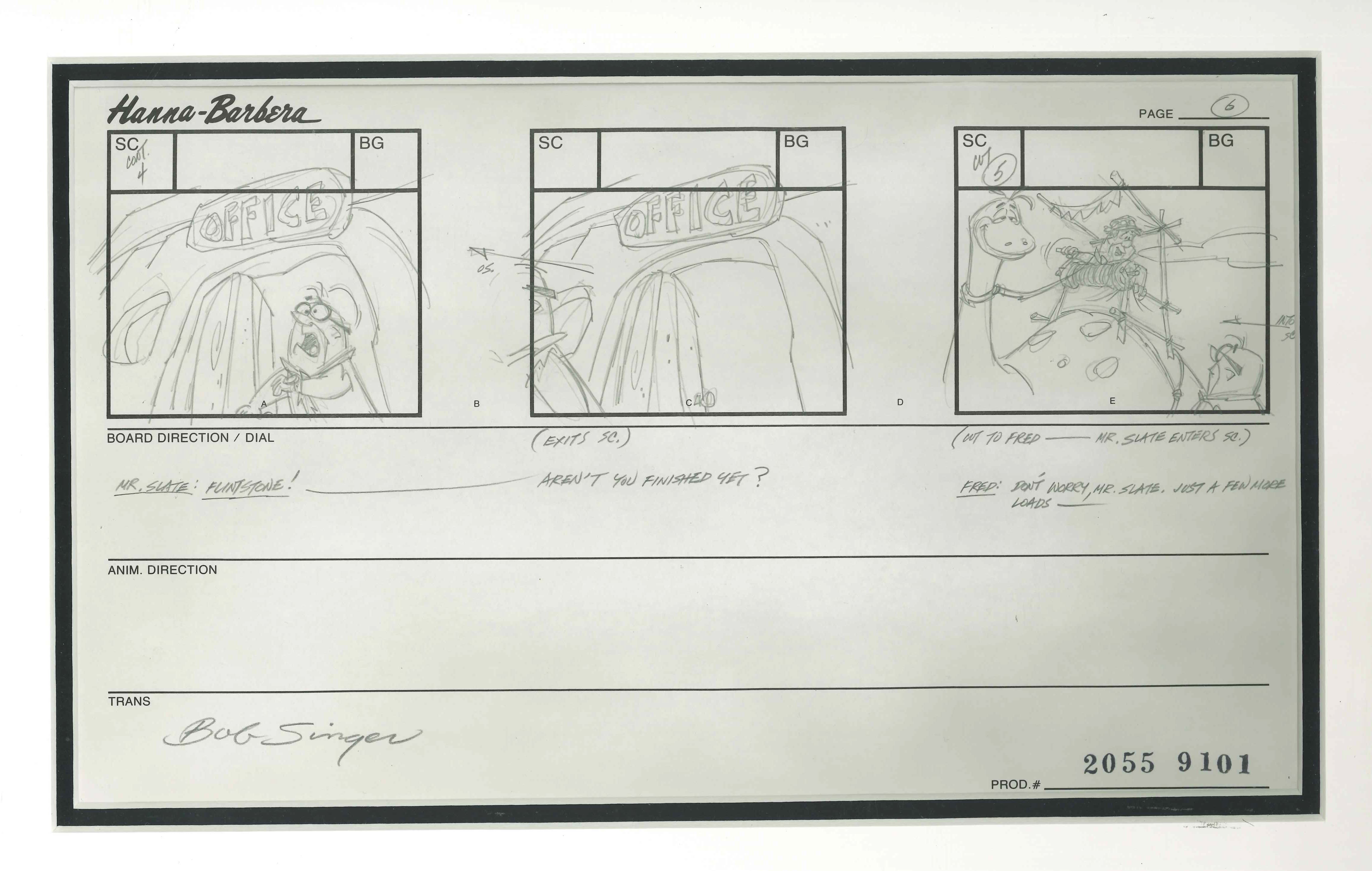 The Official Chuck Jones Virtual Experience is pleased to offer HANNA BARBERA fans a "Fred, Slate Holly Rock a Bye Baby Storyboard 6" Original artwork by Bob Singer.