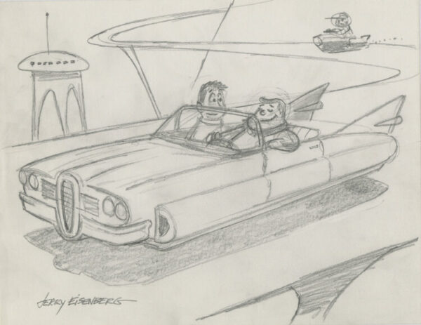 "The Official Chuck Jones Virtual Experience is pleased to offer HANNA BARBERA fans a "Future Cad Gag" original drawing  by Jerry Eisenberg.
