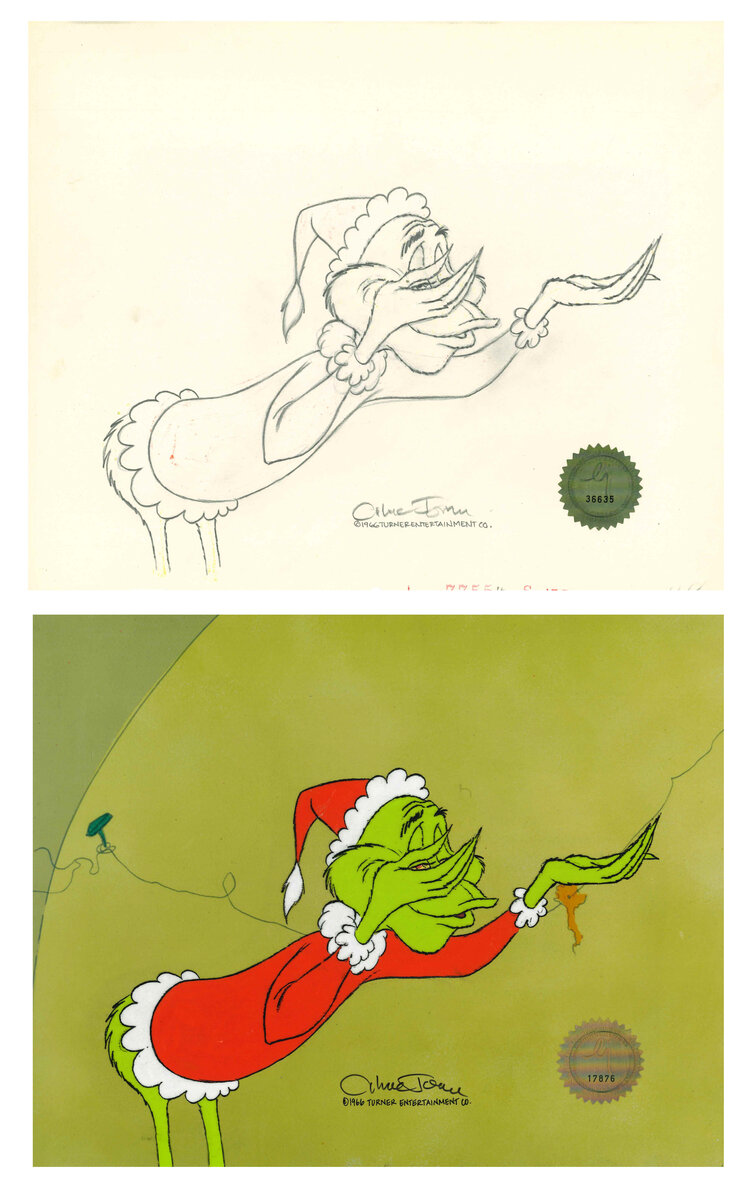This rare, original production cel and drawing was created by animation director-artist, Chuck Jones from his vast portfolio of original and limited-edition works of art. The 1966 animated television special, Dr. Seuss’ How the Grinch Stole Christmas was directed by Chuck Jones and is based on the 1957 children's book of the same name by Dr. Seuss.
