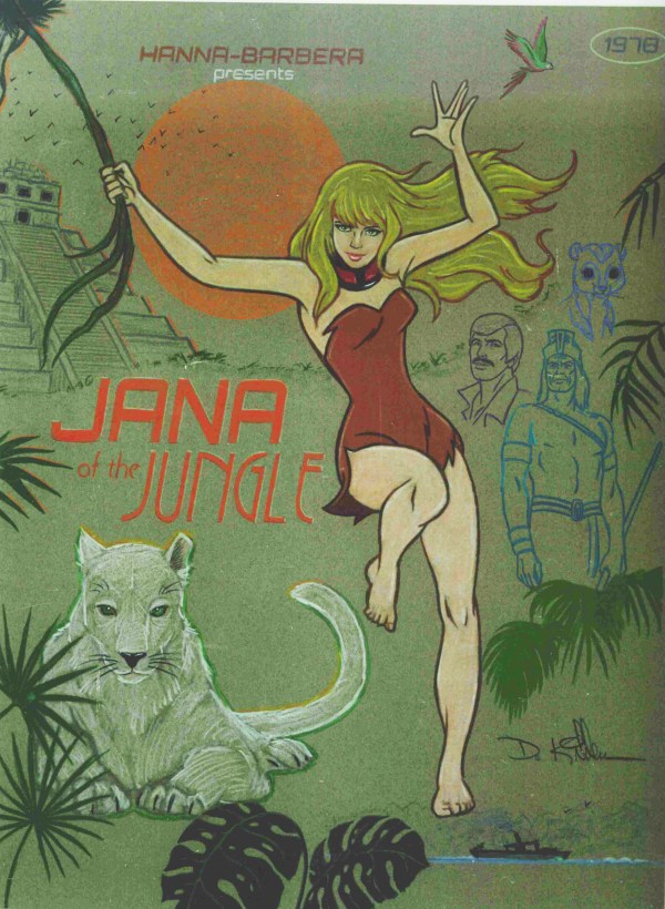 This work of art was inspired by an original by Daniel Killen based on the 1978 Hanna-Barbera animated television series "Jana of the Jungle" created by comic strip artist Doug Wildey and produced by Hanna-Barbera Productions.