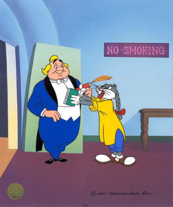 The inspiration for this work of art came from an original work by Chuck Jones from the 1943 animated short, 'Long-Hared Hare' featuring Bugs Bunny and the opera star, Giovanni Jones.