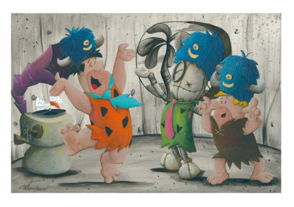The inspiration for this work of art came from an original by Fabio Napoleoni featuring his character, Marcenivo, with the Flintstones characters, Fred and Barney, an exclusive for Comic-Con.