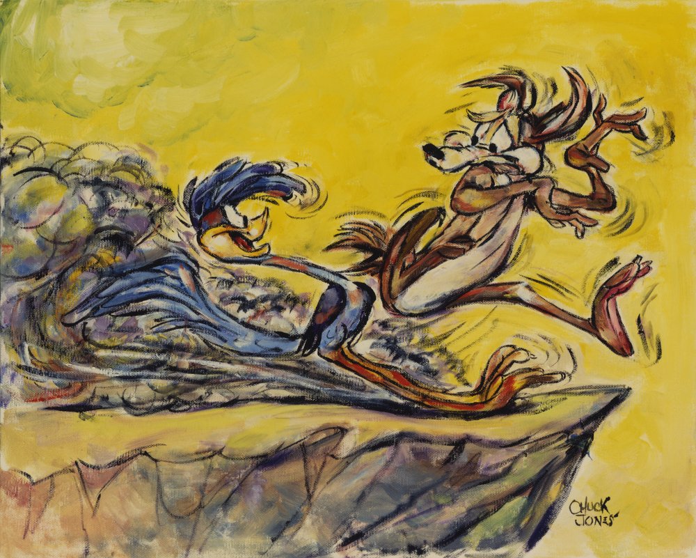 The inspiration for this work of art came from an original drawing by Chuck Jones from the Looney Tunes characters Road Runner and Wile E. Coyote.