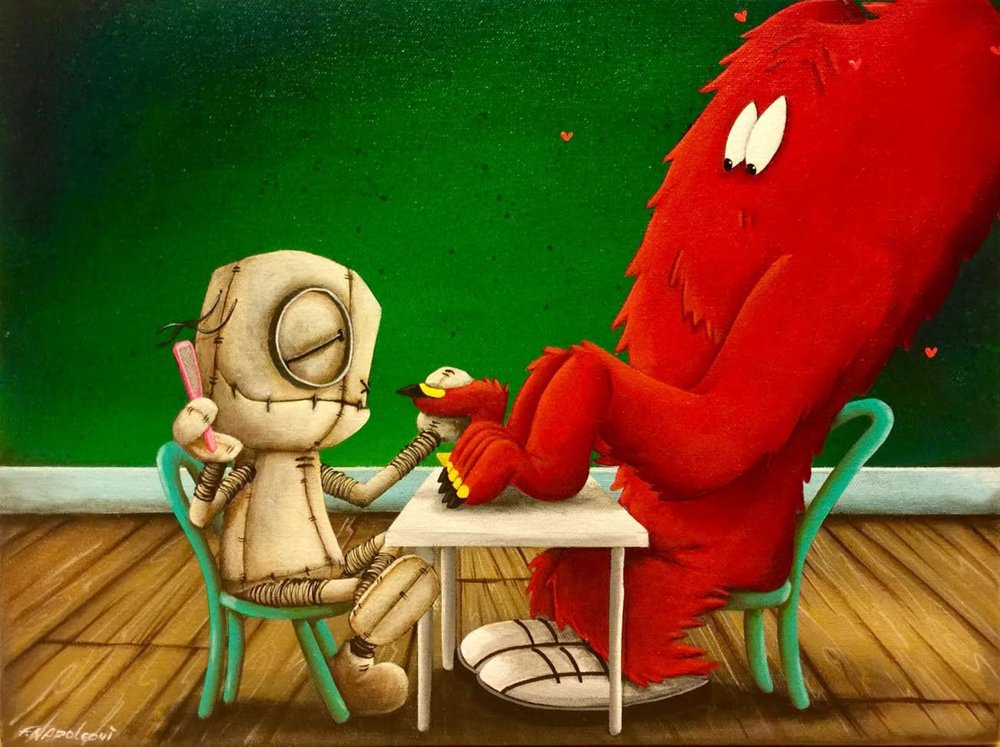 The inspiration for this work of art came from an original by Fabio Napoleoni based on his character, Marcenivo, and the Looney Tunes character, Gossamer from the scene in the 1946 Chuck Jones-directed, Hair-Raising Hare.