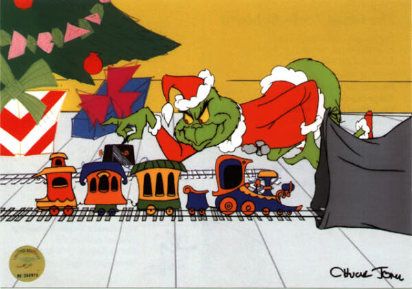 The Official Chuck Jones Virtual Experience is pleased to offer GRINCH fans a "The Great Train Robbery (with the Grinch)" Limited Edition work by Chuck Jones.