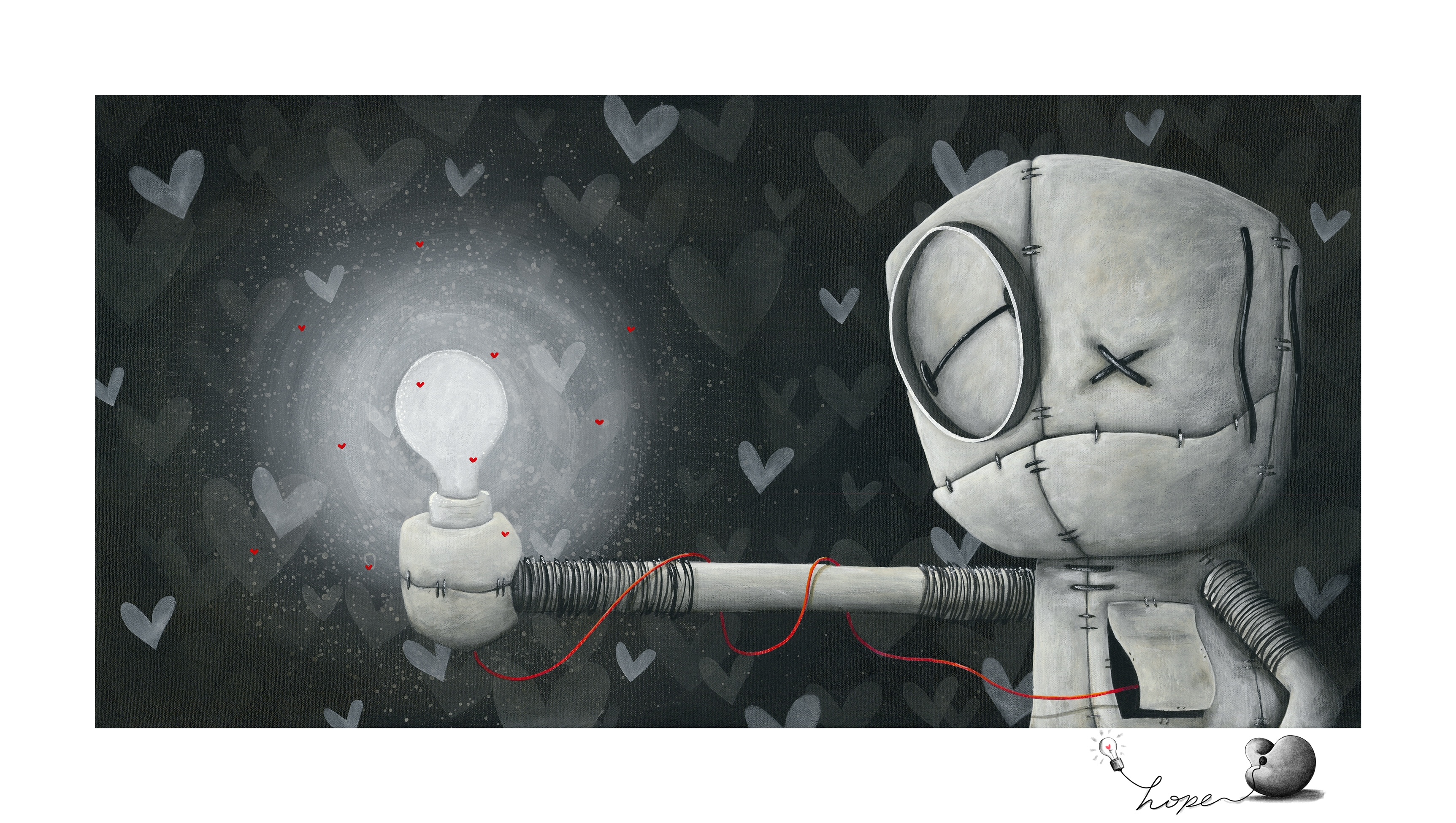 "The Smallest Amount Will Always Shine Through” is the follow up to “Never dark when you hold on to hope”. In this image you will find that the power provided to the bulb is coming directly from Marcenivo. An abundance of hope is not needed, just a simple spark will light a path."
