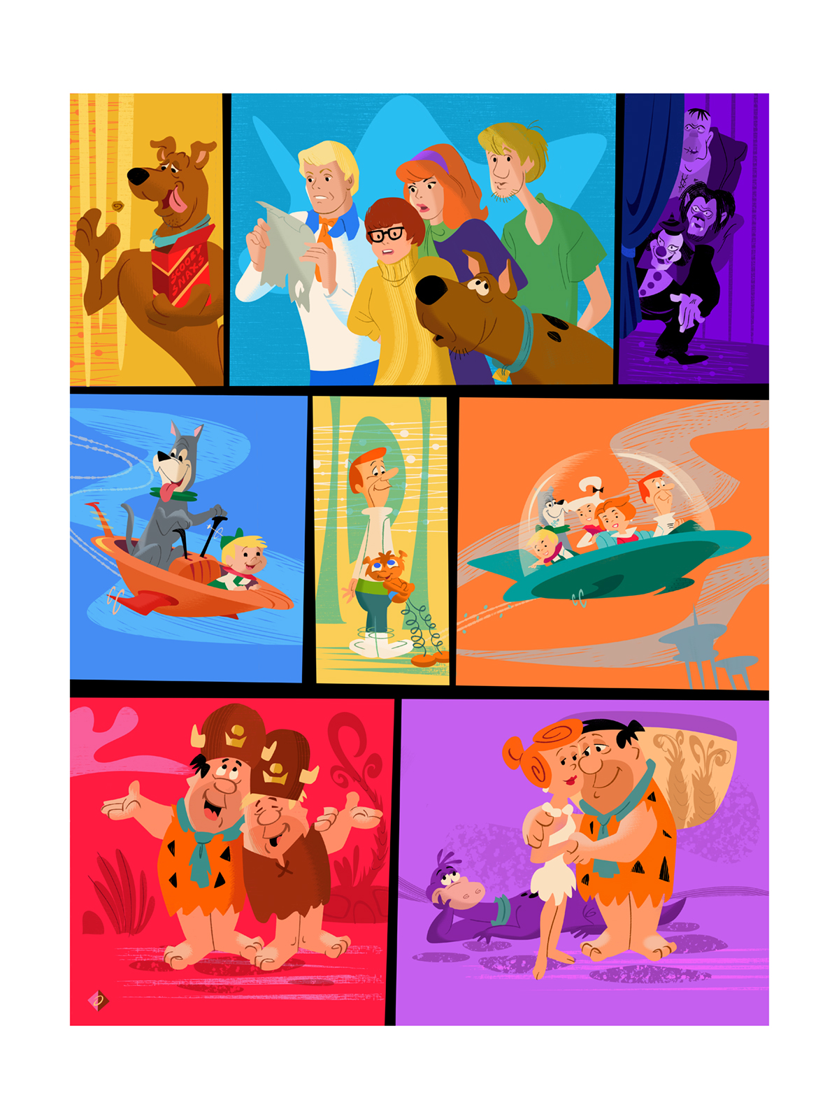 The inspiration for this work of art came from the collaboration of Alan Bodner and Bob Singer as a tribute to the Hanna-Barbera series including Scooby Doo, the Jetsons, and the Flintstones.
