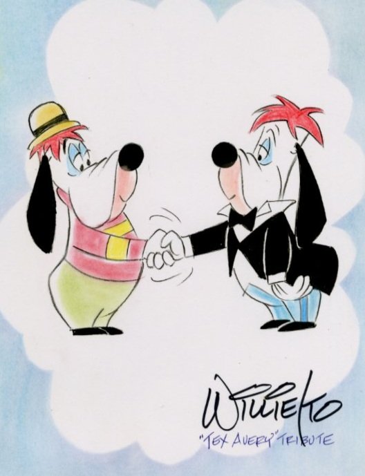 The Official Chuck Jones Virtual Experience is pleased to offer M.G.M Cartoon Studio fans a "Two Dogs" (Droopy and Drippy), a Tex Avery Tribute Original Drawing artwork by Willie Ito.