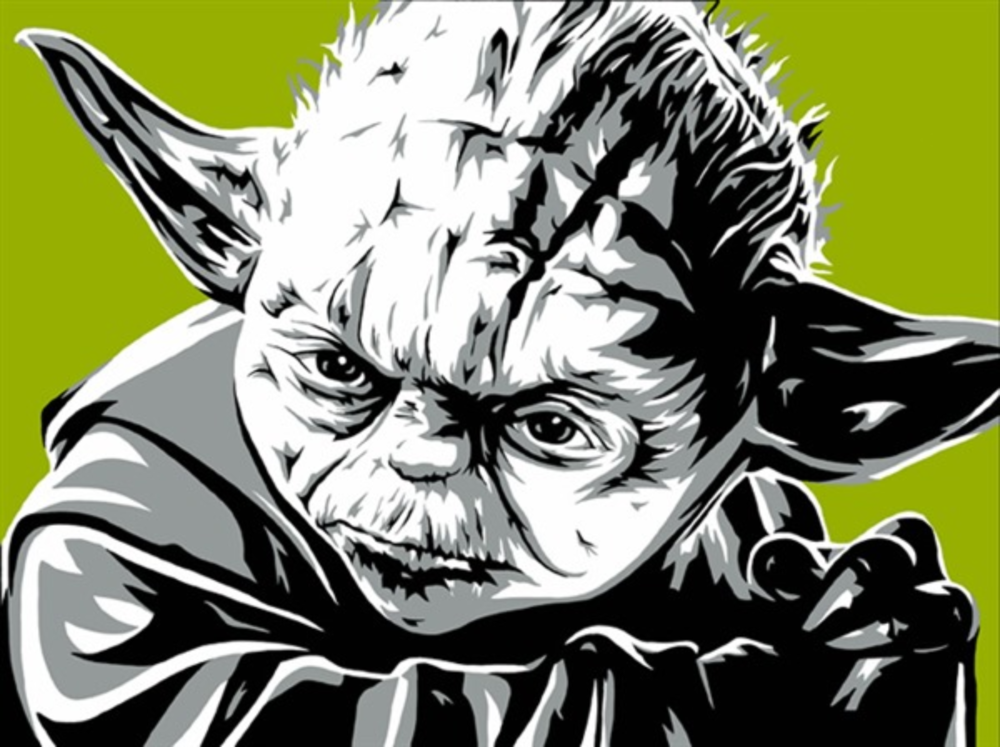 The inspiration for this work of art came from an original work by Allison Lefcort of the Star Wars character, Yoda.