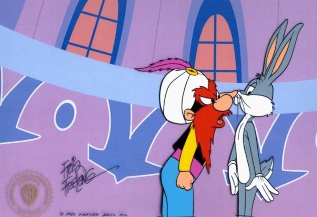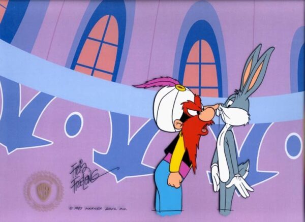 The Official Chuck Jones Virtual Experience is pleased to offer LOONEY TUNES fans a "Yosemite And Bugs Nose To Nose" Original Production Cel work by Friz Freleng.